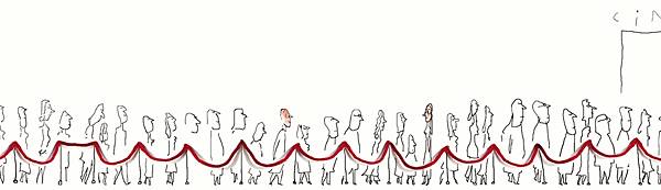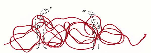 從一句「我等待…」,展開一條生命的線。翻開書本,一個急著長大的小男孩用力拉著一條長長的紅線,好像也想帶著我們趕快進入下一頁;或是一堆亂七八糟的棉線,旁邊寫著「等待對方先說對不起」,如此簡單的構想所帶來的效果,令人會心一笑。透過插畫人物的表情,我們似乎也感受到了等待背後的種種心情,不論是焦急、不安、甜蜜、失落、悲傷……